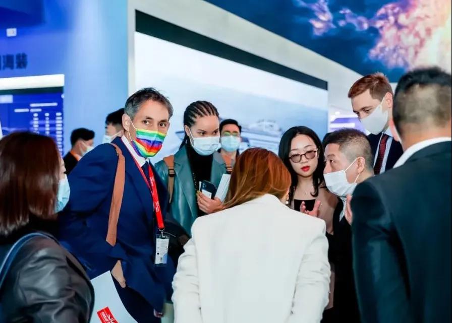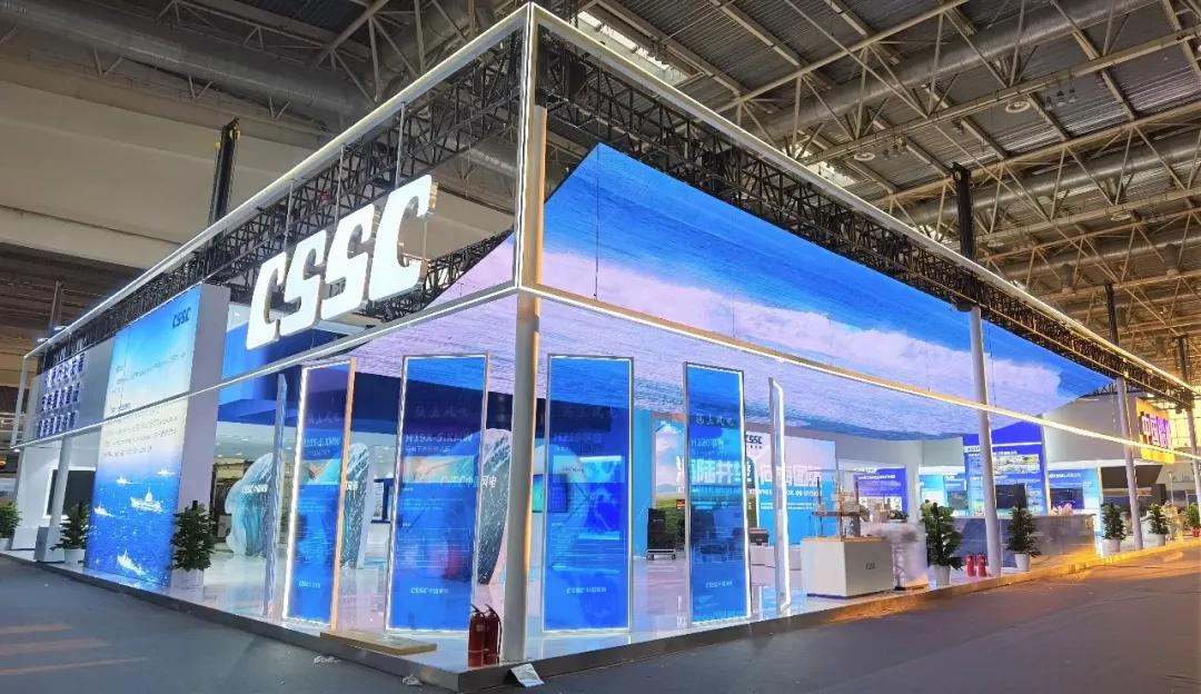 中國船舶集團展臺摒棄了“傳統(tǒng)色彩矩陣”,用“深海藍”加 “風機白”打造出大氣磅礴的開合式復合空間域,細節(jié)上則采用生態(tài)為先、大道至簡、科技為尚三大設計語言,將“風傳送”“海推動”“碳排放”業(yè)務生態(tài)鏈條進行了全方位的解構(gòu),吸引了眾多觀展人士駐足。