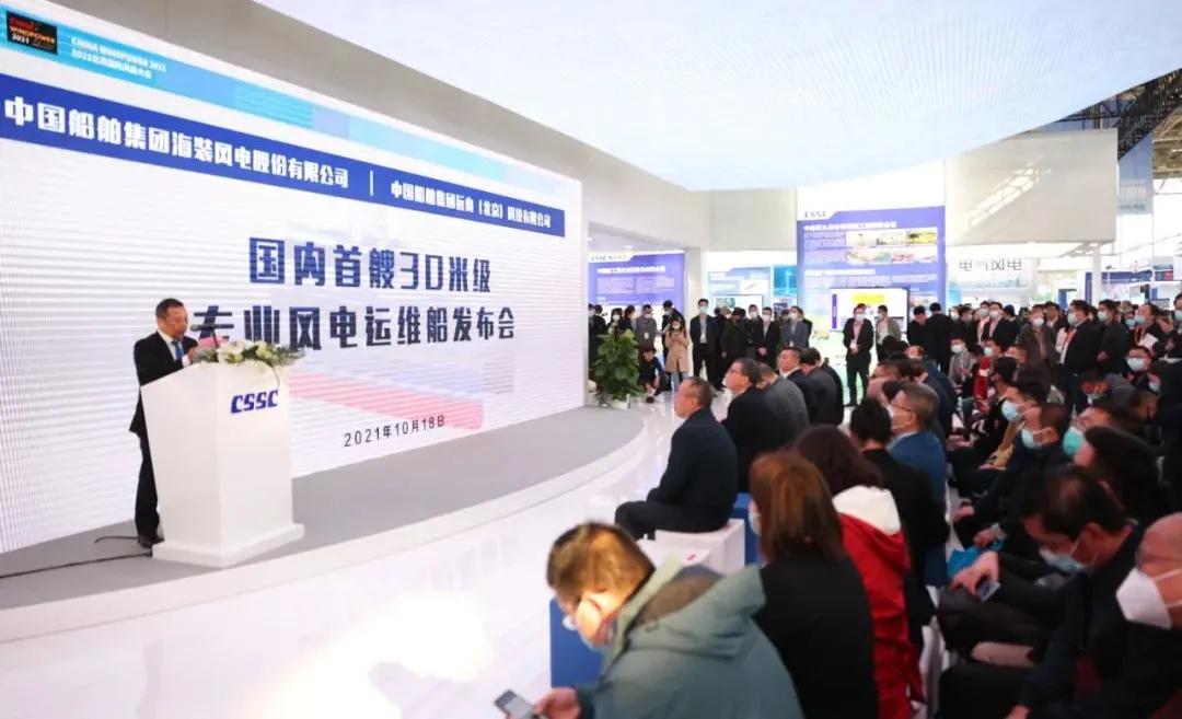 在風能展上,中國海裝與遠舟科技聯(lián)合設計制造的國內(nèi)首艘30米級專業(yè)風電運維船發(fā)布,最大裝載38噸,可抗浪高4米,可搭乘12名運維人員和6名船員,具有高強度、輕重量的結(jié)構(gòu)特點和優(yōu)良的安全性、快速性、防腐性、耐波性等,將于今年正式投運。