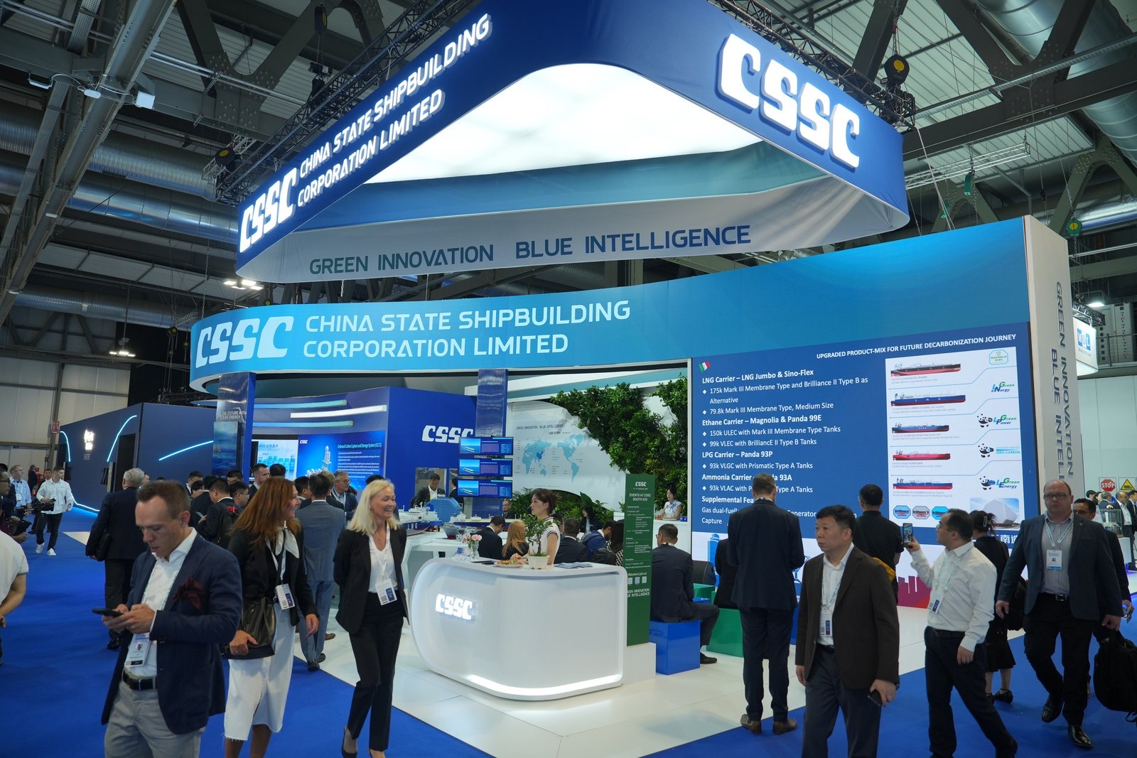 此次展會(huì),中船集團(tuán)緊密圍繞“清潔能源、綠色發(fā)展”參展主題,科學(xué)高效利用展臺(tái)展示空間,設(shè)置集團(tuán)總體區(qū)、海上LNG產(chǎn)業(yè)鏈裝備區(qū)、綠色能源開發(fā)儲(chǔ)運(yùn)裝備區(qū)、零碳低碳技術(shù)區(qū)、全球營銷服務(wù)網(wǎng)絡(luò)區(qū),系列化、場(chǎng)景化展示中船集團(tuán)高水平海上LNG產(chǎn)業(yè)鏈以及綠色清潔能源領(lǐng)域創(chuàng)新技術(shù)產(chǎn)品和標(biāo)志性成果,包括“夢(mèng)想”號(hào)大洋鉆探船、27.1萬立方米超大型液化天然氣運(yùn)輸船、9.9萬立方米超大型乙烷乙烯運(yùn)輸船、7500立方米液態(tài)二氧化碳運(yùn)輸船、集裝箱式電解水制氫設(shè)備等,充分彰顯中船集團(tuán)產(chǎn)業(yè)鏈綜合競(jìng)爭優(yōu)勢(shì)和綠色低碳創(chuàng)新能力,高效助力重點(diǎn)客戶關(guān)系鞏固及海外市場(chǎng)開發(fā),突出體現(xiàn)推動(dòng)綠色轉(zhuǎn)型發(fā)展的企業(yè)社會(huì)責(zé)任擔(dān)當(dāng)。