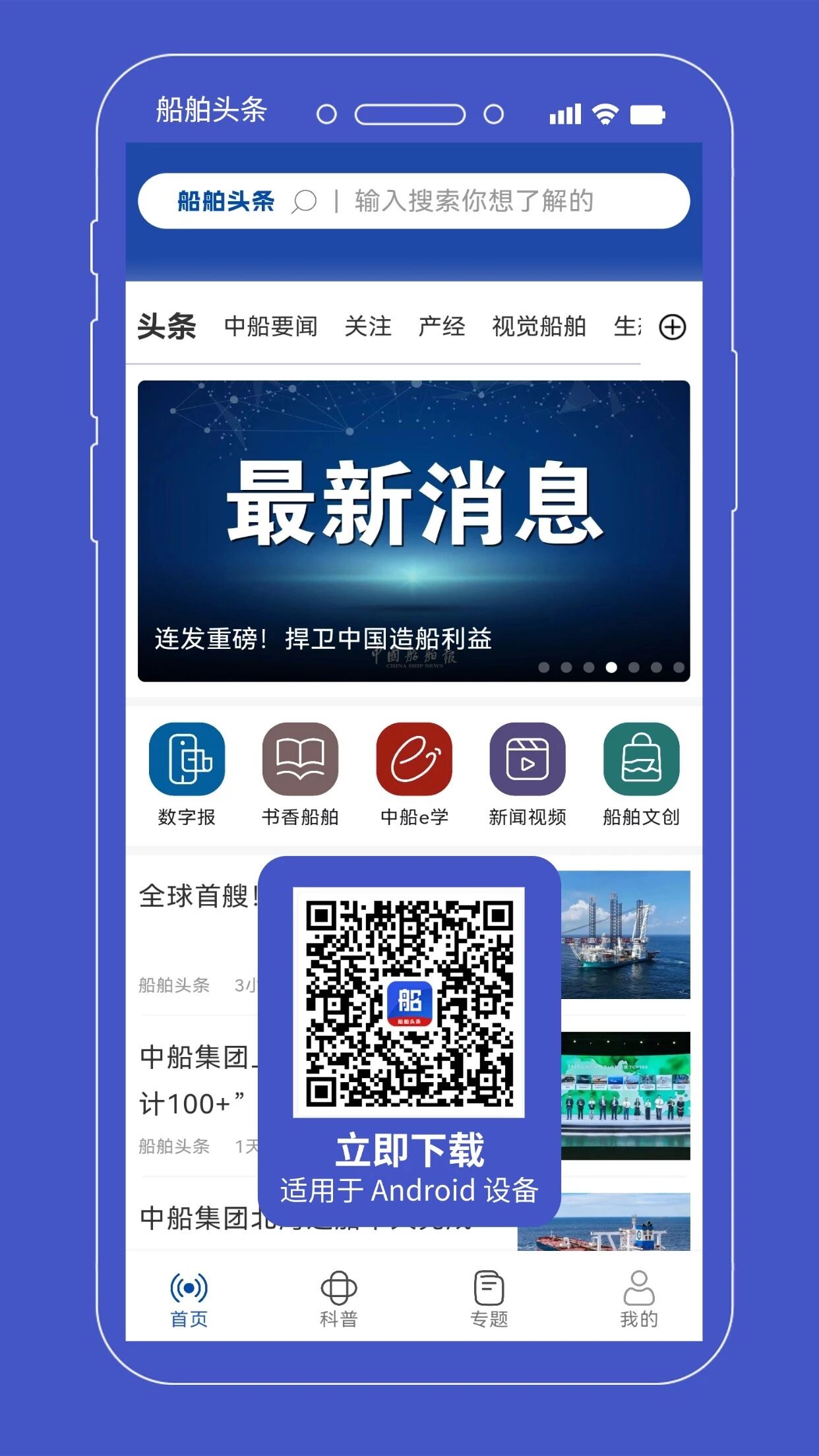 “船舶頭條”App聚焦海洋裝備產(chǎn)業(yè)鏈,集新聞發(fā)布、融合傳播、專業(yè)解讀、科普宣傳、企業(yè)智庫(kù)、服務(wù)聚合等功能為一體,設(shè)有“頭條”“中船要聞”“關(guān)注”“產(chǎn)經(jīng)”“視覺(jué)船舶”“生態(tài)圈”6個(gè)精品頻道以及“科普”“專題”等功能版塊,并鏈接“書(shū)香船舶”“《中國(guó)船舶報(bào)》數(shù)字報(bào)”“中船e學(xué)”“新聞視頻”“船舶文創(chuàng)”等多個(gè)服務(wù)端口,目前支持安卓系統(tǒng)下載使用。