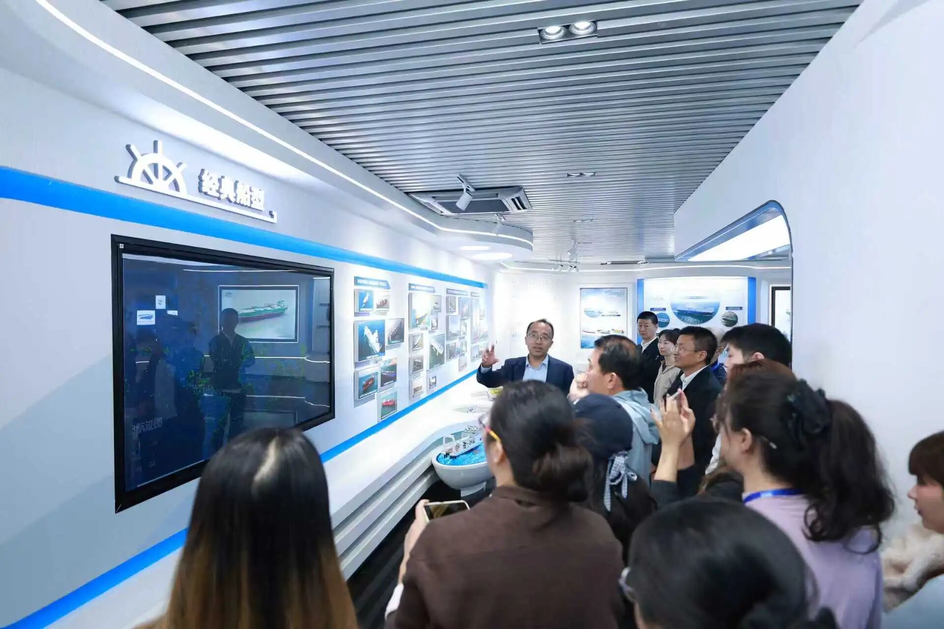 媒體代表團(tuán)先后參觀了上船院展廳及智能船舶實(shí)驗(yàn)室,并聽取了相關(guān)專家對(duì)院船型品牌與低碳零碳技術(shù)發(fā)展、數(shù)智賦能船舶研發(fā)設(shè)計(jì)等專題的講解,感受著上船院深厚的科技底蘊(yùn)和創(chuàng)新的澎湃動(dòng)力。