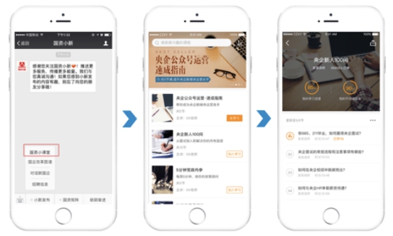 “國(guó)資小新”上線五年來(lái),基于對(duì)粉絲需求的深度了解,先后設(shè)立了“微招聘”、“畢業(yè)去哪兒”、“新思”、“小新薦書(shū)”等欄目,并嘗試語(yǔ)音知識(shí)分享,為包括國(guó)企員工在內(nèi)的廣大粉絲提供招聘求職信息、分享企業(yè)管理經(jīng)驗(yàn)、解讀國(guó)企改革發(fā)展的政策和形式,幫助粉絲實(shí)現(xiàn)更好的職業(yè)規(guī)劃和發(fā)展。近期推出的“小新微課”,是“國(guó)資小新”結(jié)合最新技術(shù)手段、在這一領(lǐng)域的又一嘗試,課程免費(fèi),立足公益,為粉絲竭誠(chéng)服務(wù),旨在提供更具權(quán)威性、普遍性、專業(yè)性的職業(yè)發(fā)展服務(wù)。