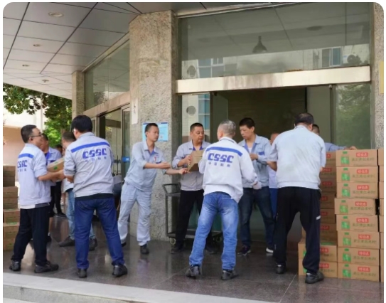 為應(yīng)對持續(xù)高溫天氣,中船物資全面部署防暑降溫工作,切實保障一線員工健康安全。下屬各子公司嚴格落實安全生產(chǎn)責任,組織專項安全檢查,強化作業(yè)現(xiàn)場安全管理;結(jié)合不同崗位作業(yè)強度,科學制定防暑降溫方案,并通過安全教育提升員工應(yīng)急處置能力。同時,積極開展“關(guān)愛員工送清涼”慰問活動,為一線員工發(fā)放藿香正氣水、清涼飲料等防暑物資,并升級改造員工休息室,改善高溫作業(yè)環(huán)境。