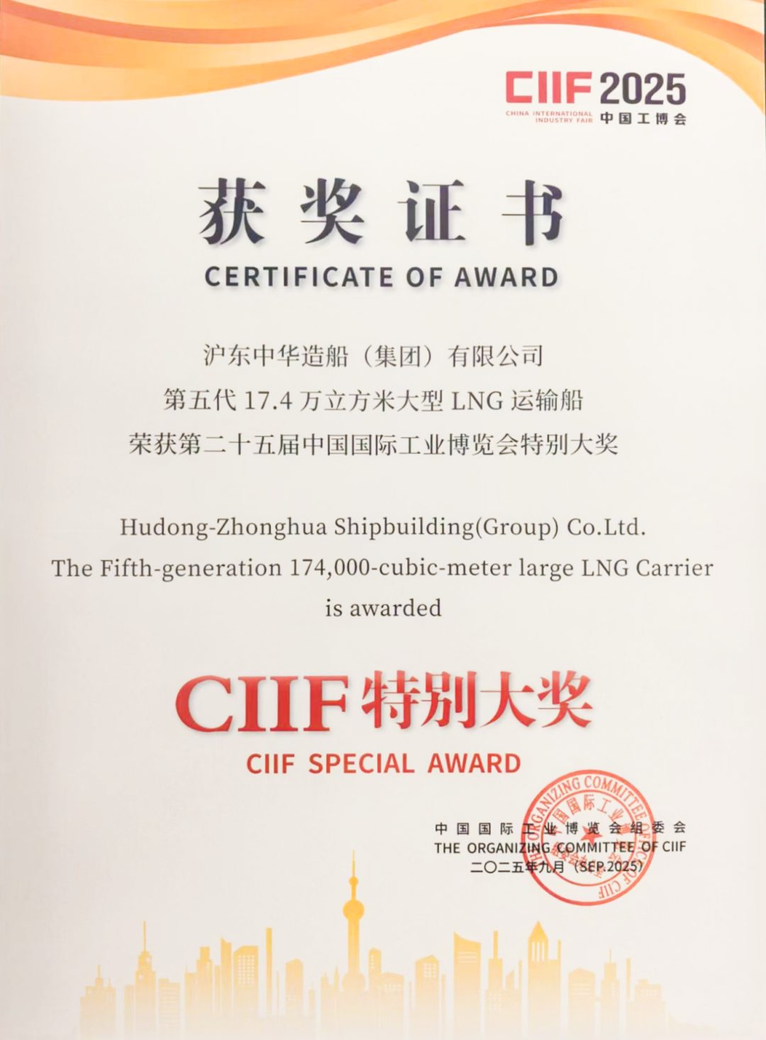 近日,中國船舶集團有限公司旗下滬東中華自主研發(fā)的第五代“長恒系列”17.4萬立方米雙燃料動力低速推進LNG船,從數百個參賽項目中脫穎而出,摘下第二十五屆中國國際工業(yè)博覽會唯一的CIIF特別大獎。